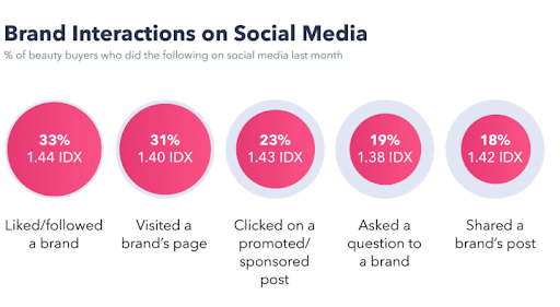 In fact, a recent study shows that 33% of beauty buyers liked or followed a brand on social media last month, and 31% visited a brand’s page. Others clicked on sponsored posts (23%), asked questions to a brand (19%), or even shared a post (18%).