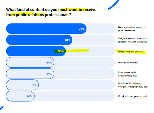Journalists especially like research because it helps them support their stories with facts. In fact, studies show that 61% of journalists say they want original research reports such as market data and trend insights from PR professionals.