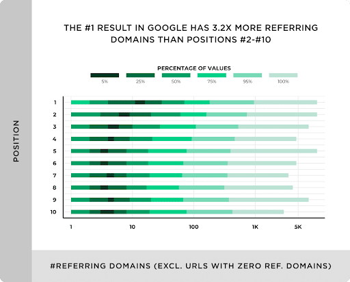 Another study by Backlinko showed that the #1 result on Google has 3.8x more backlinks than pages ranking lower on average.