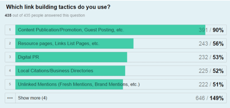 A study shows that more than half of SEO professionals say they actively use resource pages and link list pages as part of their link building strategy.